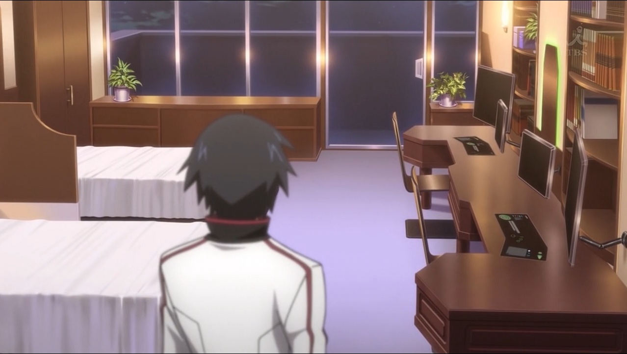 Room 1025 is the dormitory room resided in by Ichika Orimura. He was assigned to this room by his assistant homeroom teacher Maya Yamada, not knowing that his roommate would be his first childhood friend Houki. Later on, Charlotte Dunois got transferred to the IS Academy under a male disguise named "Charles", in which she was assigned as Ichika's roommate. Tatenashi Sarashiki then took the liberty of assigning herself to the room, which her purpose being to protect Ichika.
